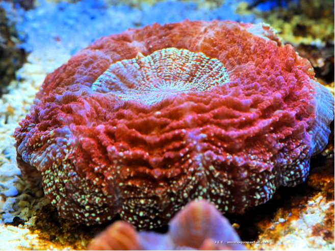 مرجان Acanthophyllia به رنگ آبی و قرمز و مقداری سبز متمایل به زرد . به نظر می رسد که رنگ این مرحان کمی رفته باشد که ممکن است به علت نوع نور آن باشد.