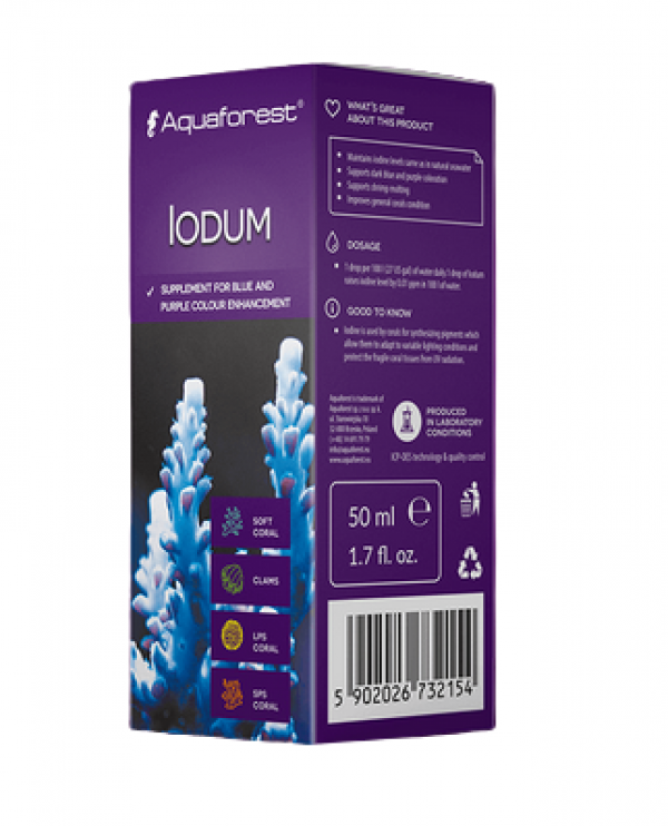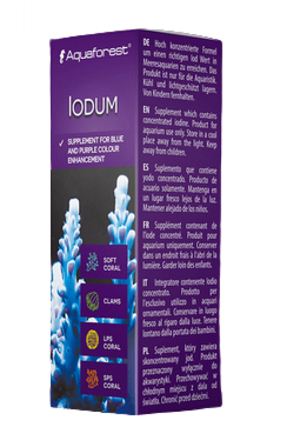 محلولی حاوی ید تغلیظ شده . ضروری برای همه مرجانها به خصوص ماشروم ها ، پلیپ ها ، گرگانیا ها و دیگر مرحانهای نرم . رنگ آبی و بنفش را در مرجانهای سخت تقویت می کند. ید به سرعت می تواند توسط جلبک های ماکرو ، نور شدید و یا اسکیمر قوی افت پیدا کند. یدیوم خاصیت ضدعفونی دارد و به سلامت ماهی ها و مرجانها و مقاومت آنها در مقابل بیماری ها کمک می کند.